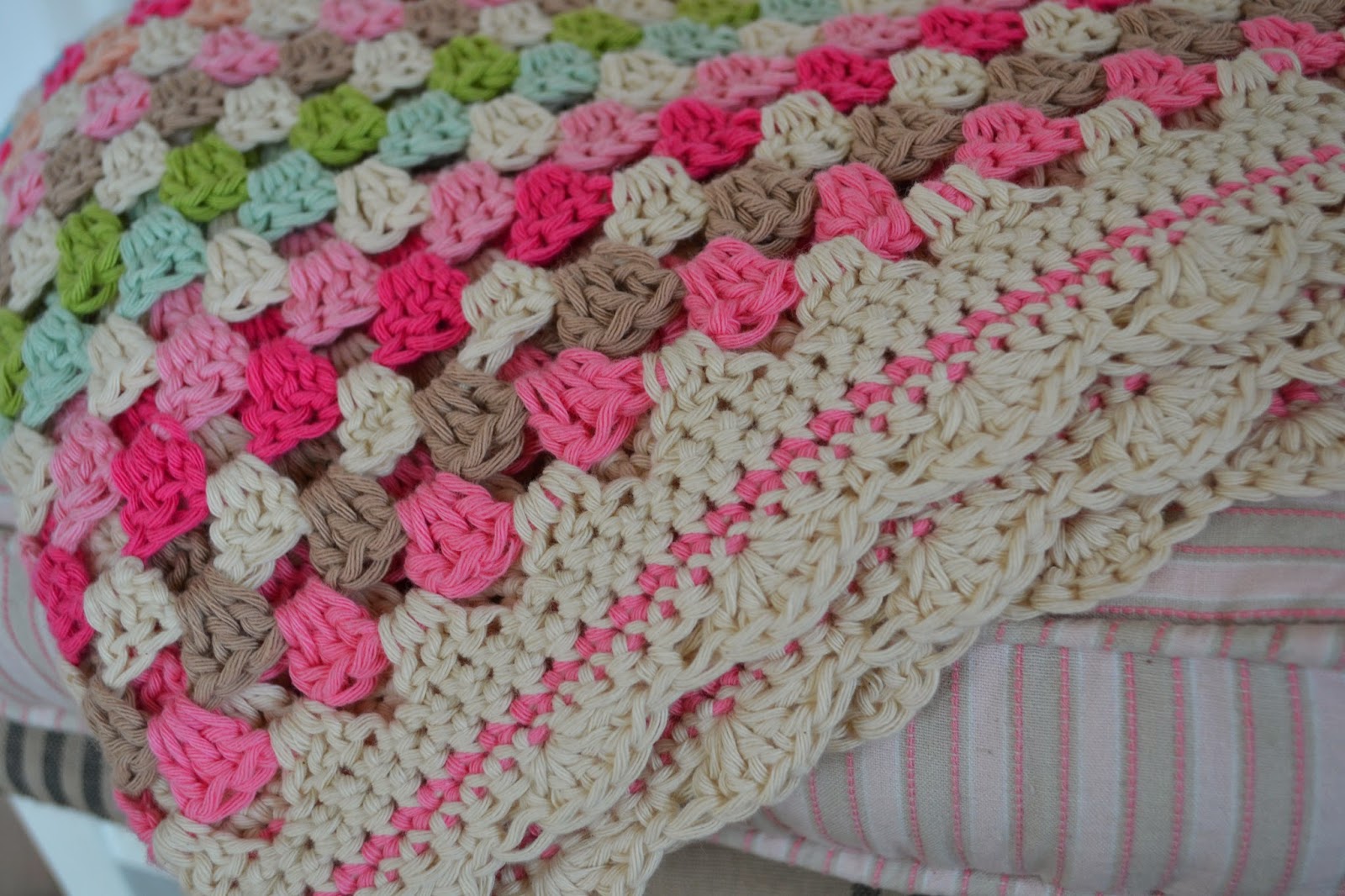 Dit haakproject ging deze zomer van start en resulteerde in een katoenen deken van ca. 100 x 100 cm. Ik vind 'm prachtig, maar een ledikantje hebben we niet meer. Voor de liefhebbers ligt deze deken in mijn shop..