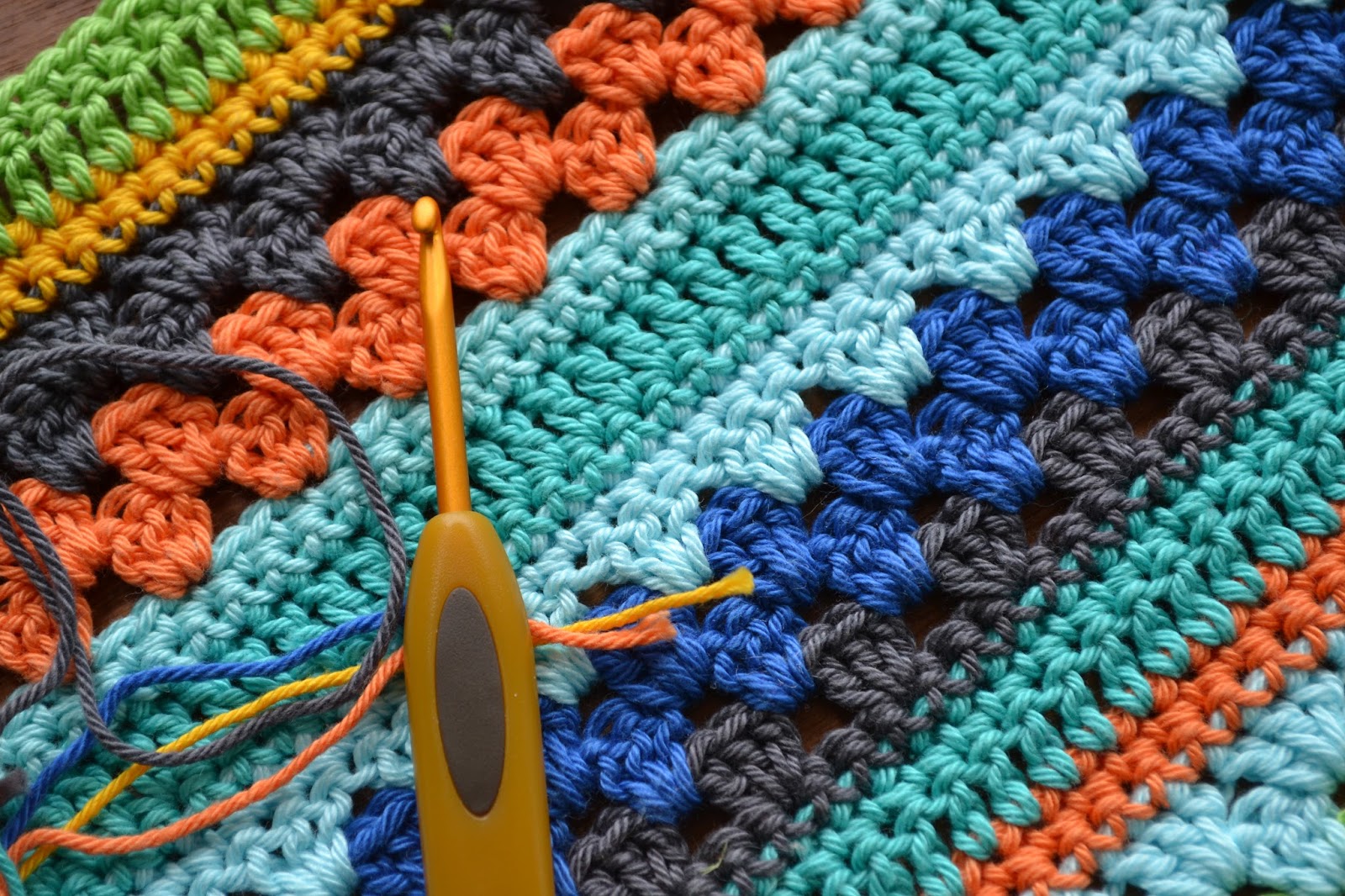 Een meivakantie die in april valt voelt ergens toch niet helemaal logisch. Hoe dan ook, het was een heerlijk excuus om er een weekje tussenuit te knijpen. We hebben genoten van de Deense kust, en ondanks de kou, was het strand bij onze kinderen z'n aantrekkingskracht niet verloren. En tja, als ik dan toch even helemaal vrij ben, moet ik natuurlijk ook even lekker freubelen. Een paar bolletjes katoen en een haaknaald passen al snel in de koffer. Achteraf was een dik wolletje voor een lekkere muts misschien nog handiger geweest, maar met de restanten katoen is toch ook weer het begin van een vrolijk dekentje ontstaan. Even vergeten hoe verslavend dat ook alweer was....