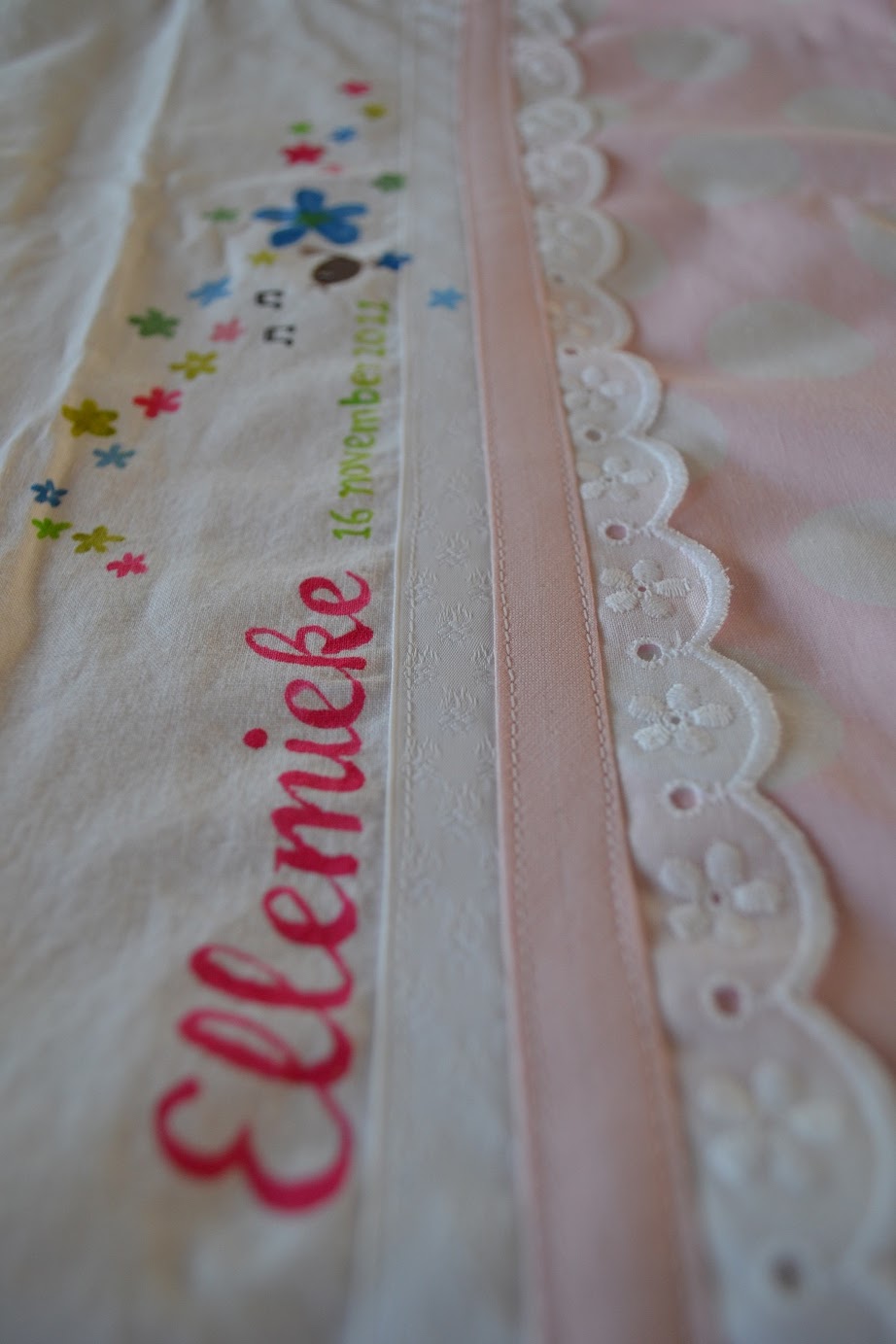 Toen klein mannetje 's middags zijn dutje deed ben ik verder gegeaan met mijn dappere poging het strijkgoed in deze week aan kant te krijgen. Inmiddels is de berg geslonken van formaat mount everest naar iets van een serieuze alp. Heel wat gedaan dus, maar ik kan er nog steeds niet overheen kijken. Vervolgens wilden de koters graag 'verven'. Nou ja, dat kon. Ze hebben zich heerlijk uitgeleefd op het canvas, het tafelzeil en de keukenkastjes, al gingen die laatste twee natuurlijk per ongeluk.