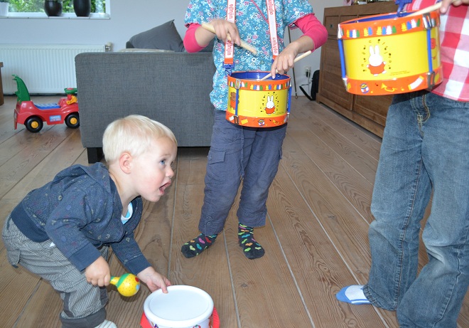 Tweede grote fout van vandaag: als pedagogisch verantwoorde moeder meegaan in de initiatieven van mijn kroost.. Toen mijn kleinste mannetje enthousiast op zijn speelgoedpianootje aan de slag ging dach ik een nieuwe impuls te brengen in de vorm van de vuilniszak vol muziekinstrumenten die op zolder lag opgeborgen. Errug leuk, ja. Precies vijf minuten was het leuk.