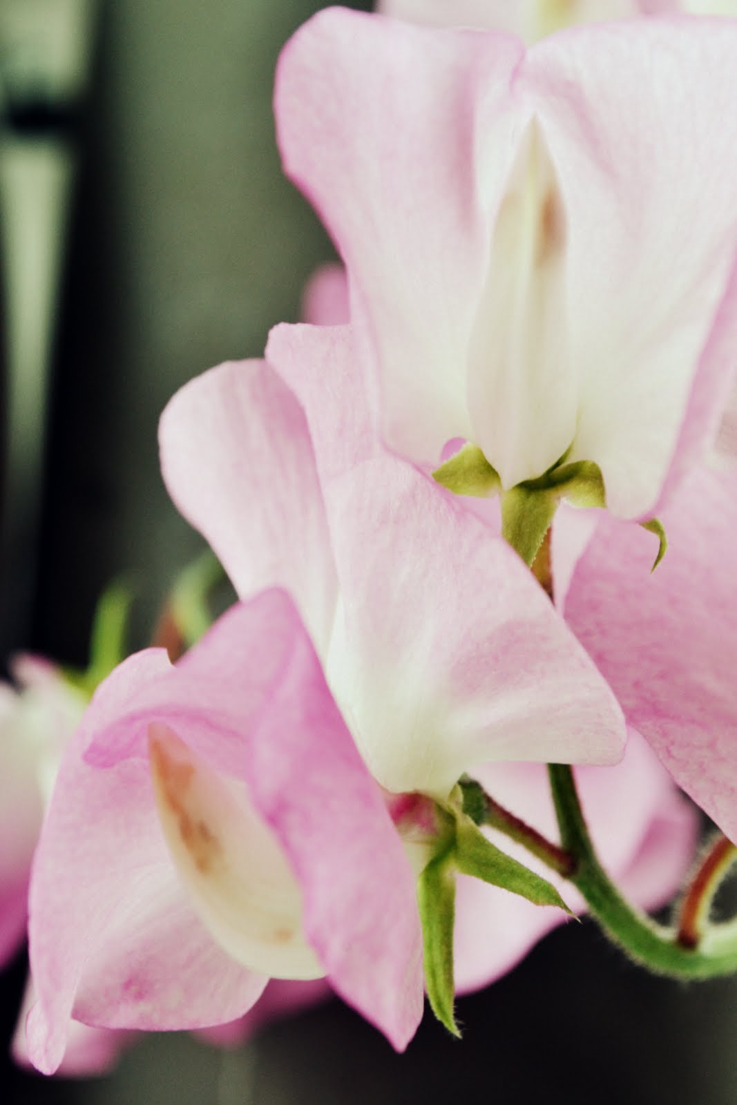 De tuin gaat gelukkig wel door, (het onkruid helaas ook) dus ik heb maar wat zomer naar binnen gehaald. De rose Lathyrus steekt prachtig af tegen mijn zand- en taupekleurige sierflessen.