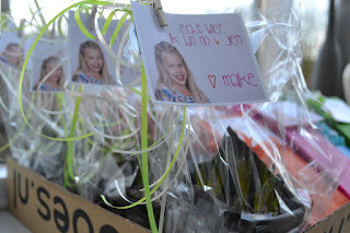 Nu was ik zelf de afgelopen dagen een flinke 'pûdsjeplakker'. Niet omdat ik er niks van bakte, in tegendeel, ik raakte zeer bedreven in plakken van pûdsjes, oftewel: zakjes. Met reden: Prinses wordt prin-zes! En daar hoort natuurlijk een traktatie bij. Nu wilde ik mij er maar wat 'gemakkelijk' af maken, door kant en klare houten figuurtjes te kopen. Maar het liep spaak op de verpakking. Ik wilde papieren zakjes. En nog leuke ook. En dat werd of duur, of veel (vanaf 250 stuks). En om nou 8 jaar lang ieder jaar op dezelfde papieren zakjes te trakteren...