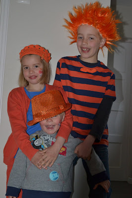 Vandaag worden de koningsspelen gevierd op de school van de kinders en de school waar ik werk. Hoewel ze op dit moment een beetje in het water vallen... nou ja!