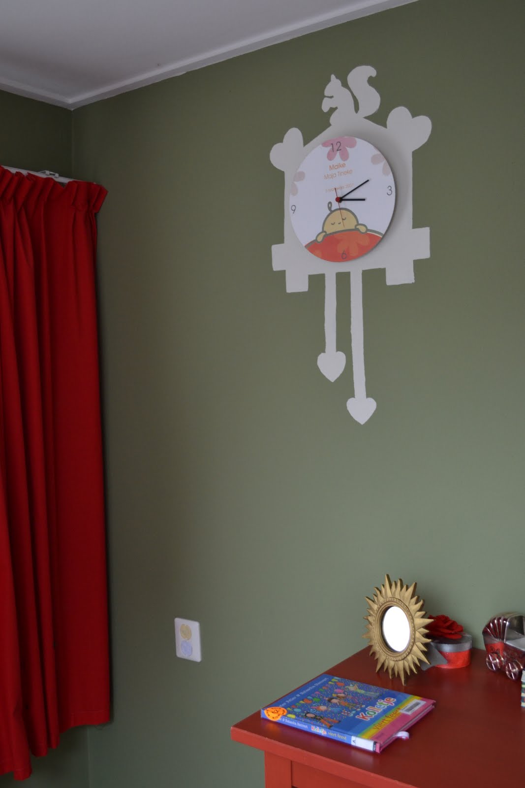 | om de geboortklok heen een muurschildering, zodat het een 'echte' koekoeksklok werd |