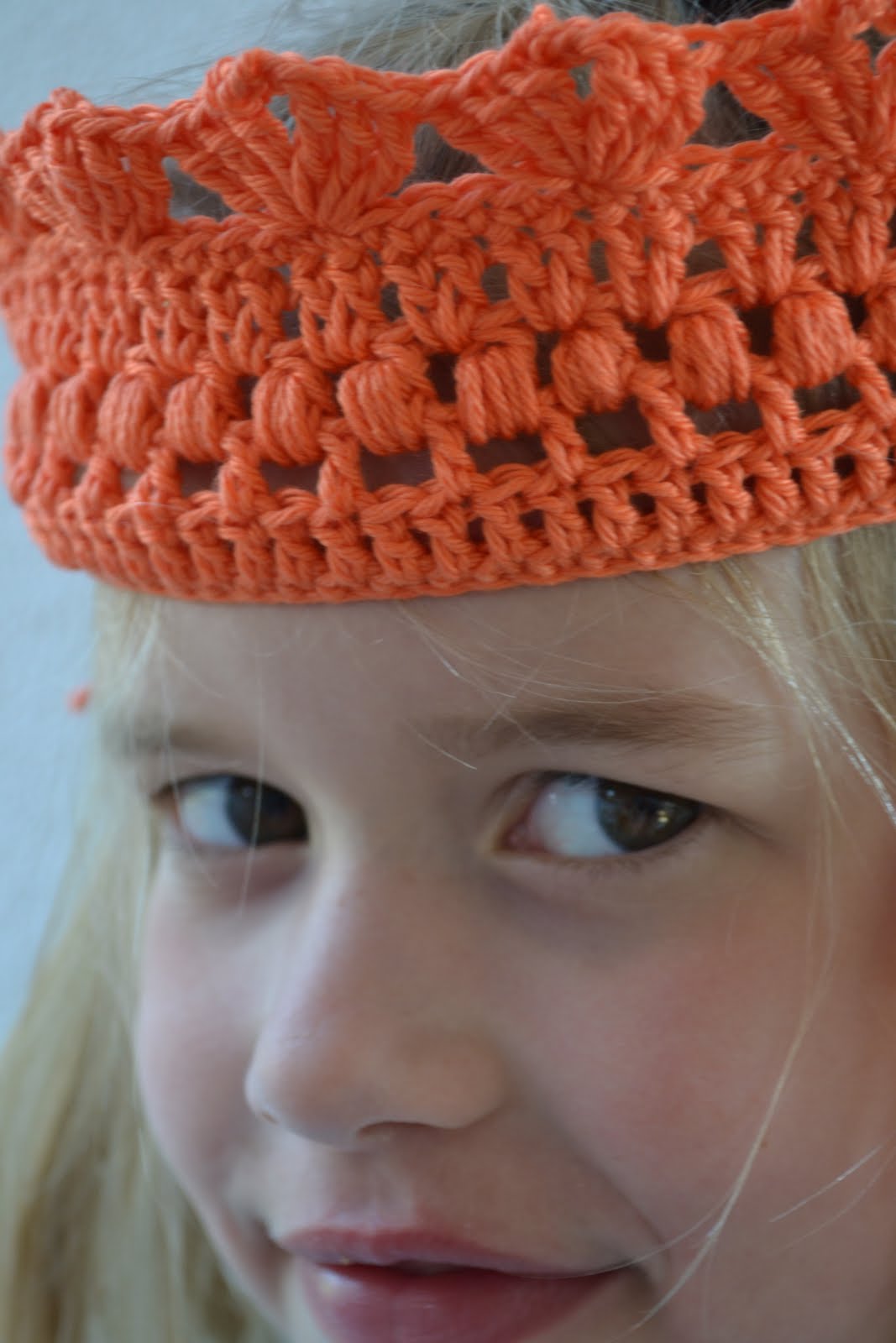 Feestelijk blijft het, met al die oranje kinderen, vlaggen en ballonnen. Voor mij eigen prinsesje haakte ik voor vandaag een kroontje, volgens de beschrijving op Wolplein.